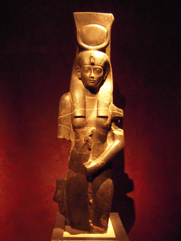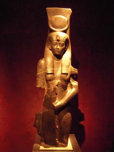 In addition to the genders of the sun and moon alternating from culture to culture, there is evidence that these attributions also varied withincertain cultures. For the Sumarians of Mesopotamia, within one time frame, the moon was perceived as both male and female, with the moon goddess Inanna born from the marriage of Nana and Ningal, a moon god and goddess, respectively, who also gave birth to Utu, the sun god. The Egyptian pantheon incorporates both moon gods and goddesses: Khones is depicted wearing a headdress of the moon disc and crescent; Thoth, the divine scribe, or god of knowledge and writing, carried the sickle (symbol of the new moon) in his hand; Osiris, the good of resurrection and rebirth, was also associated with the sickle; and Isis, the most important of the female deities, wore a sun disk resting upon a moon crown. This same horned moon crown and sun disk appear as the headdress of Harthor, the Lady of Heaven, or goddess of love and pleasure. Within the same pantheon, the sun appears in its primal manifestation as the lion-headed goddess Sekhkmet, seated with the sun disk on her head; Re is a male solar deity as well as the winged beetle, Khepera and the ram-headed god, Khnemu.